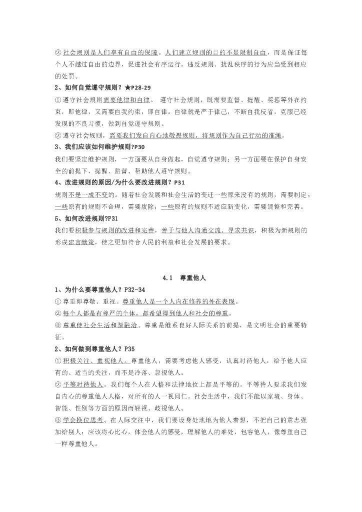 八年级上册道德与法制知识点汇总复习清单.doc
