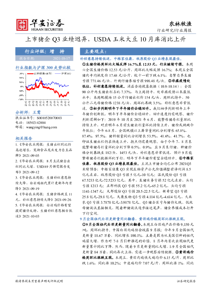华安证券:农林牧渔行业周报:上市猪企Q3业绩迥异,USDA玉米大豆10月库消比上升.pdf