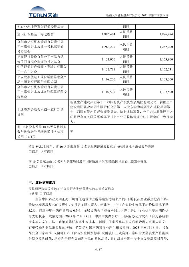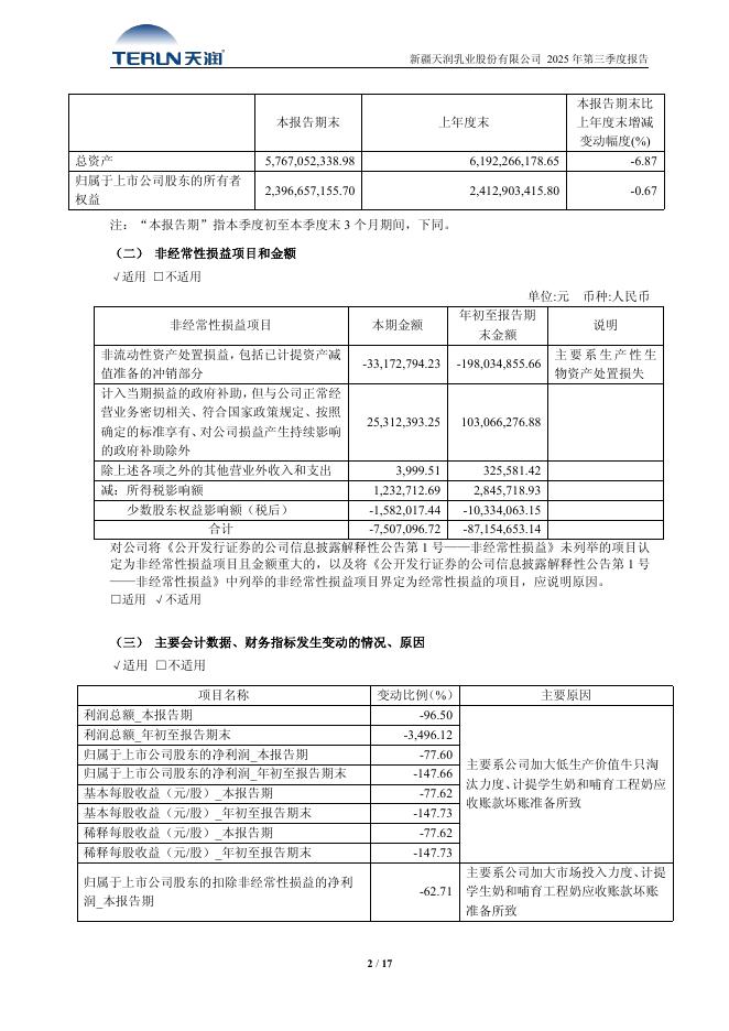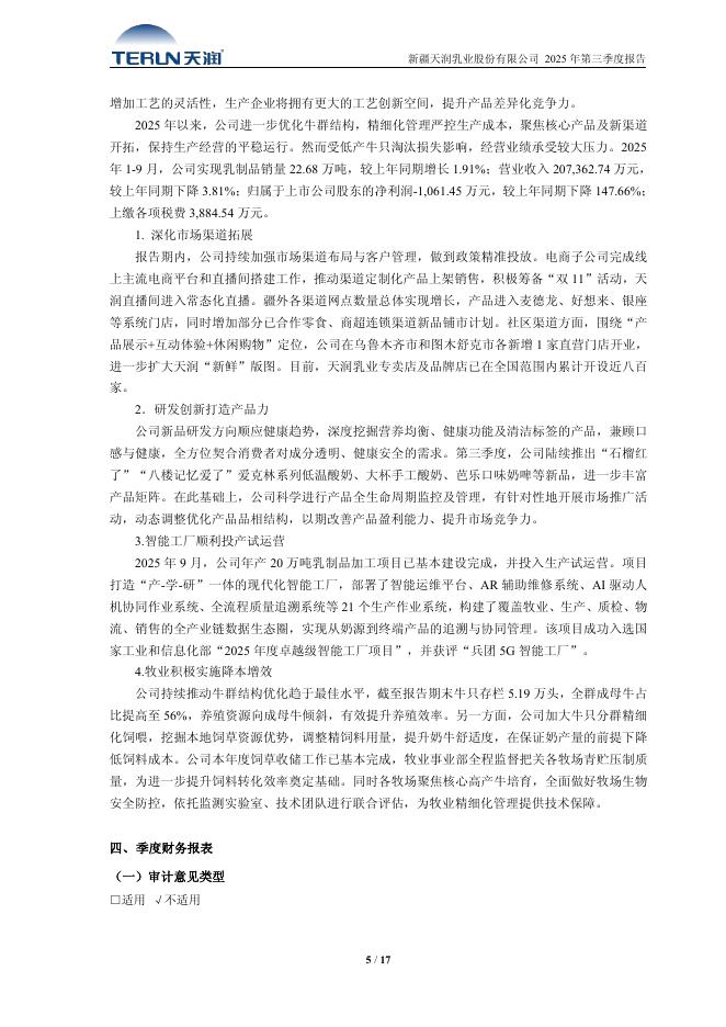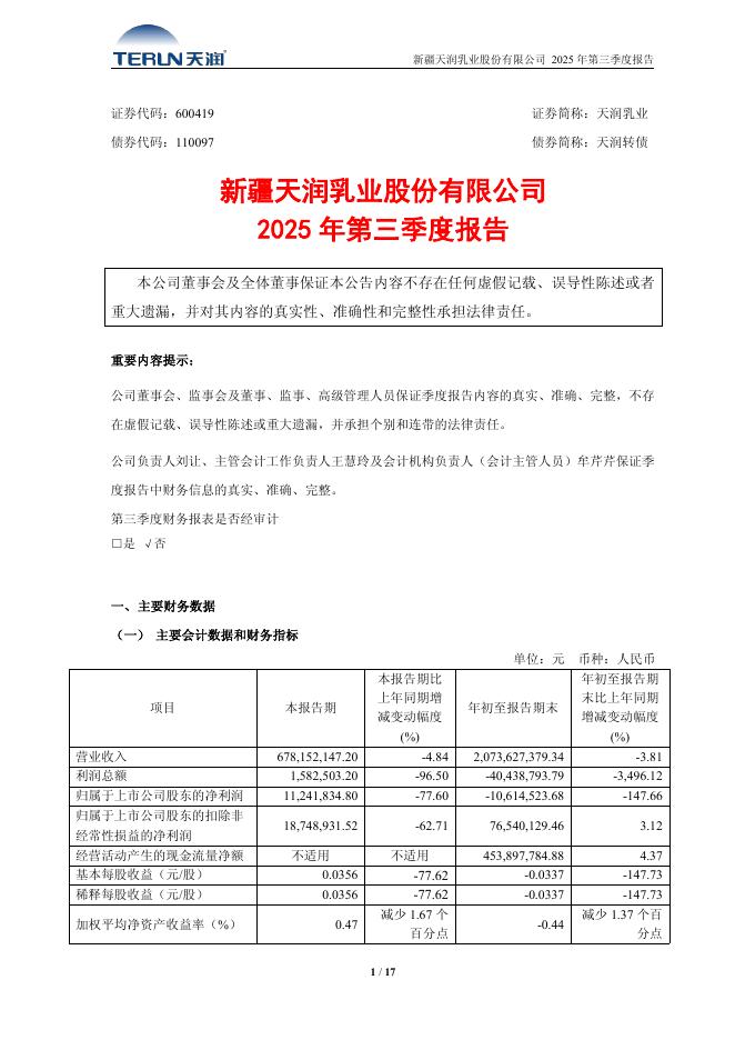 110097-天润乳业:新疆天润乳业股份有限公司2025年第三季度报告.pdf