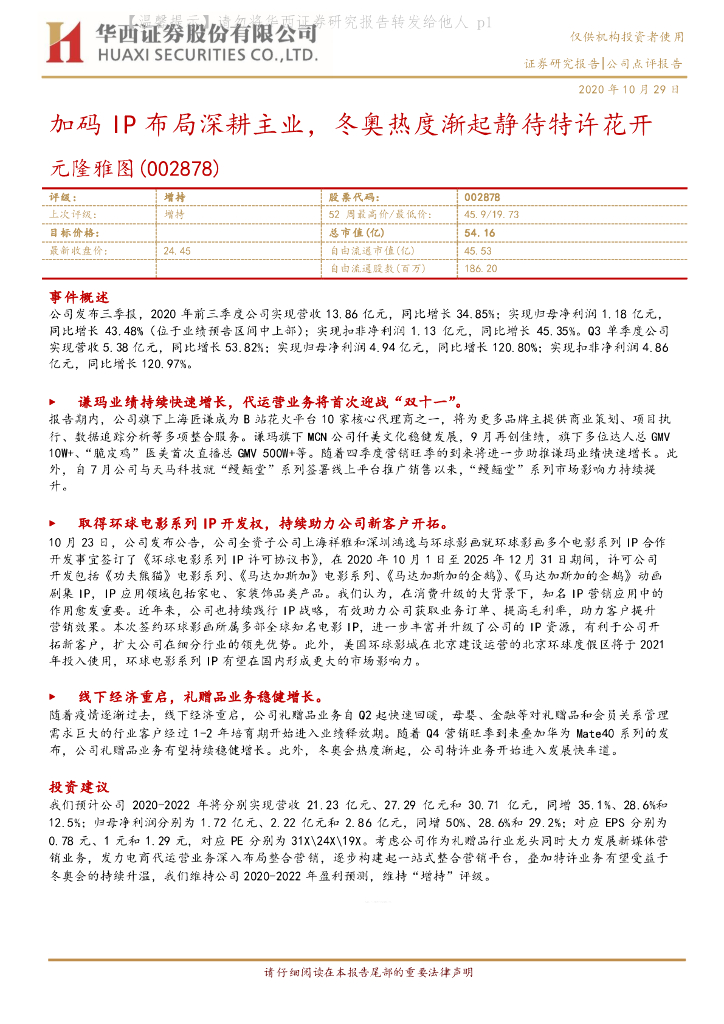 华西证券:元隆雅图(002878)-加码IP布局深耕主业,冬奥热度渐起静待特许花开.pdf