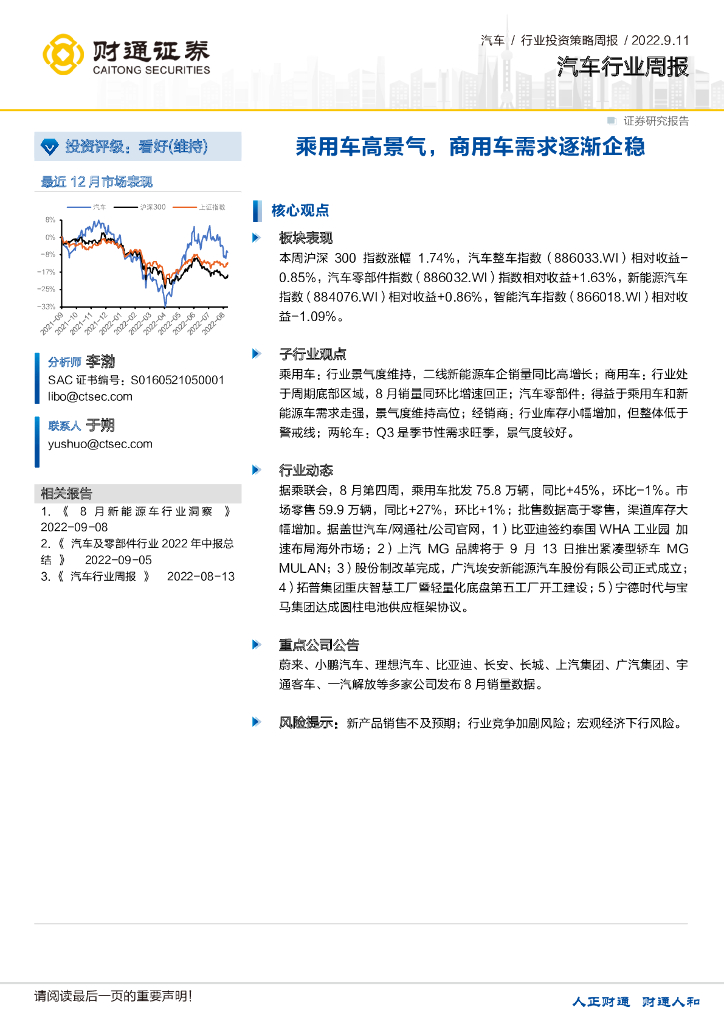 财通证券:汽车行业周报:乘用车高景气,商用车需求逐渐企稳.pdf