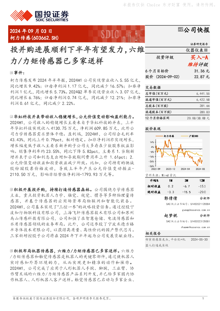 国投证券:柯力传感(603662)-投并购进展顺利下半年有望发力,六维力/力矩传感器已多家送样.pdf