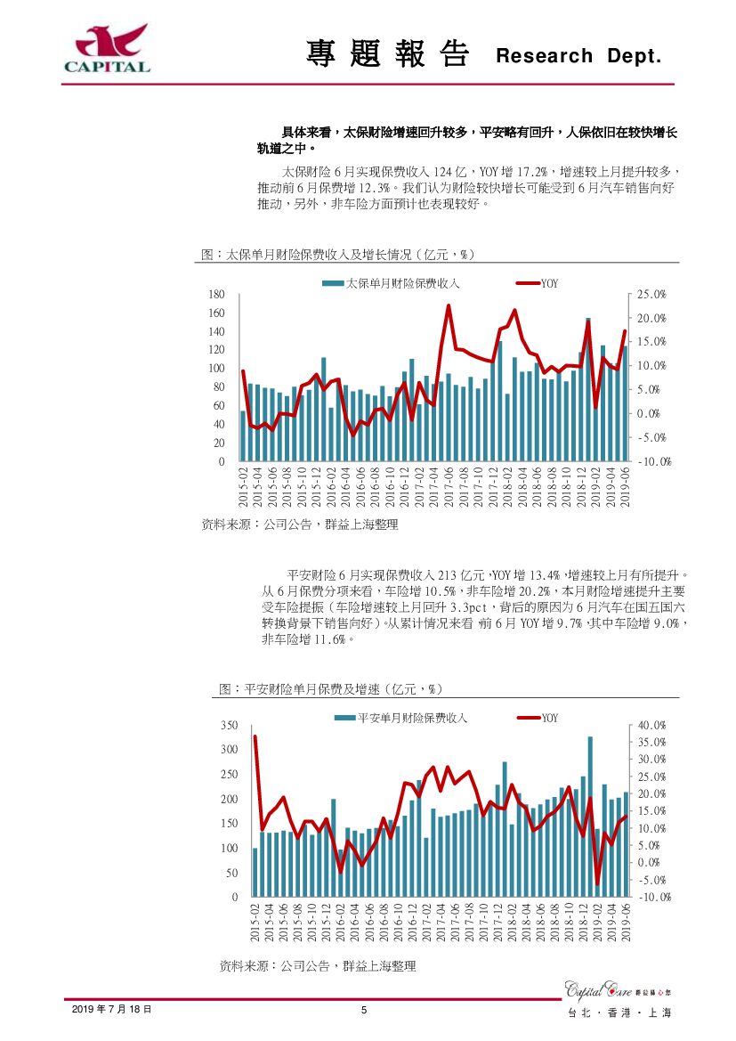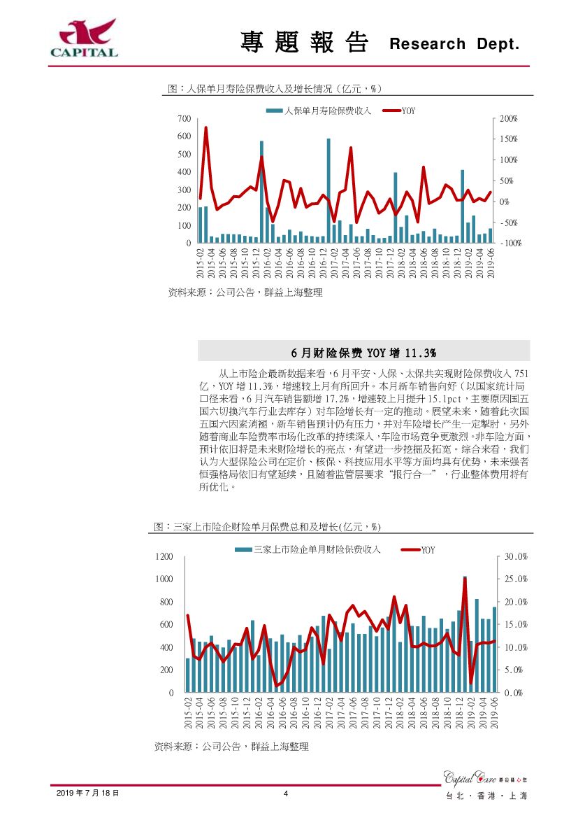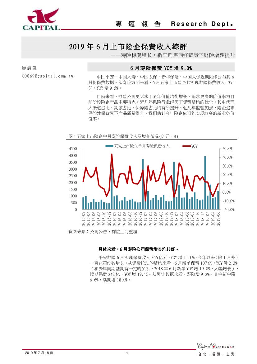 群益证券:2019年6月份上市险企保费收入综评:寿险稳健增长,新车销售向好背景下财险增速提升.pdf