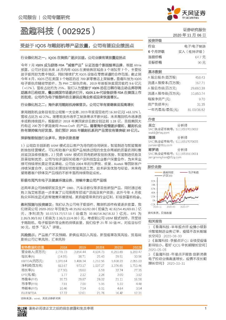 天风证券:盈趣科技(002925)-受益于IQOS与雕刻机等产品放量,公司有望迎业绩拐点.pdf