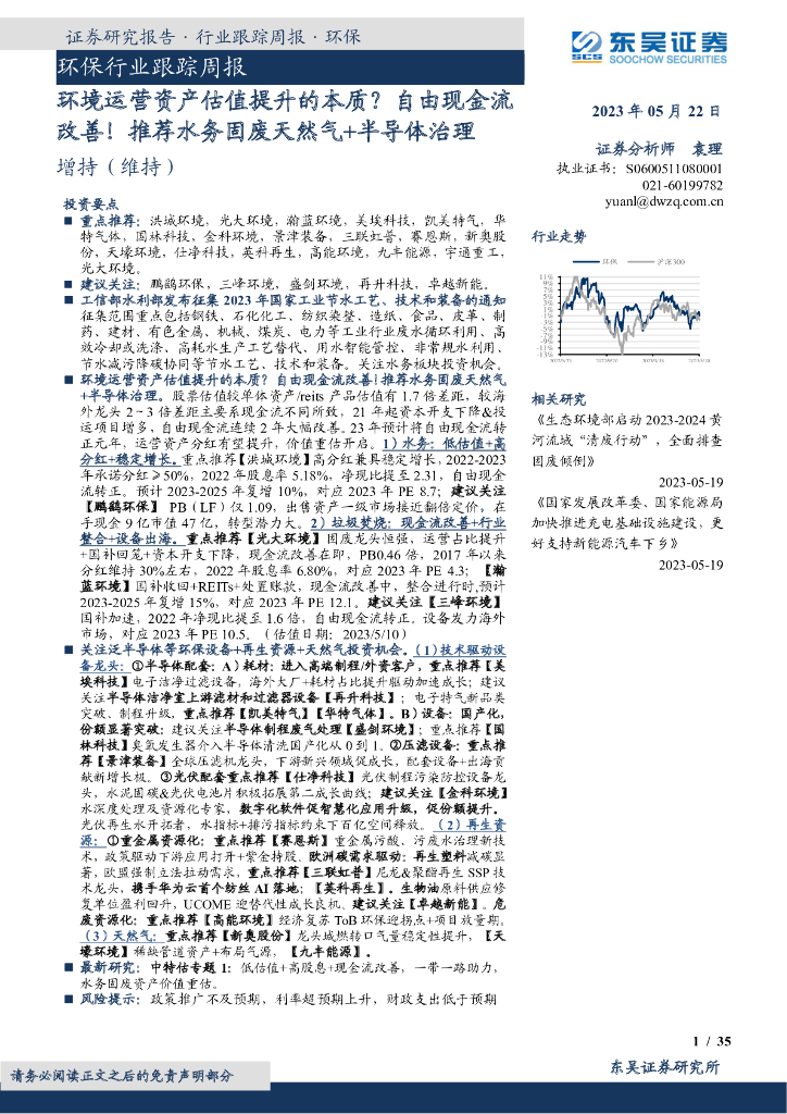 东吴证券:环保行业跟踪周报:环境运营资产估值提升的本质?自由现金流改善!推荐水务固废天然气+半导体治理.pdf