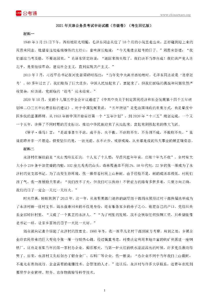 2021年天津公务员考试申论试题(市级卷)(考生回忆版).pdf