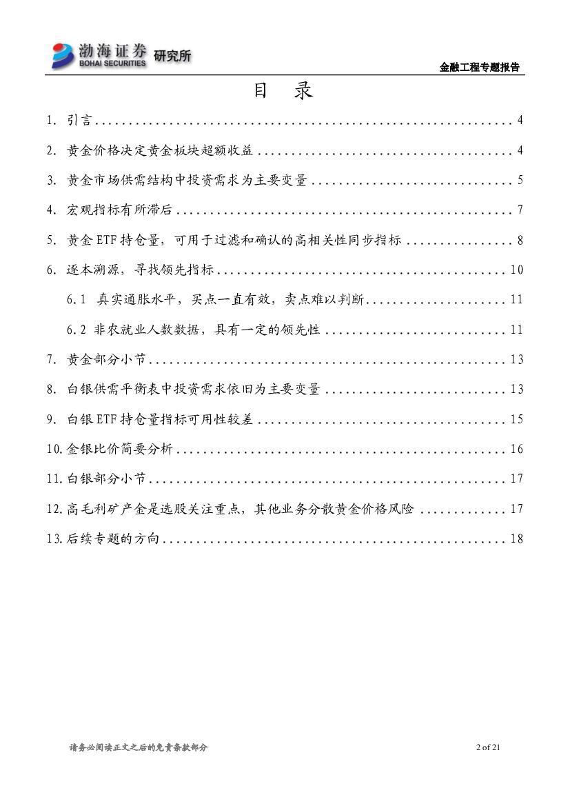 渤海证券:有色金属行业量化研究专题之二:黄金、白银量化研究.pdf
