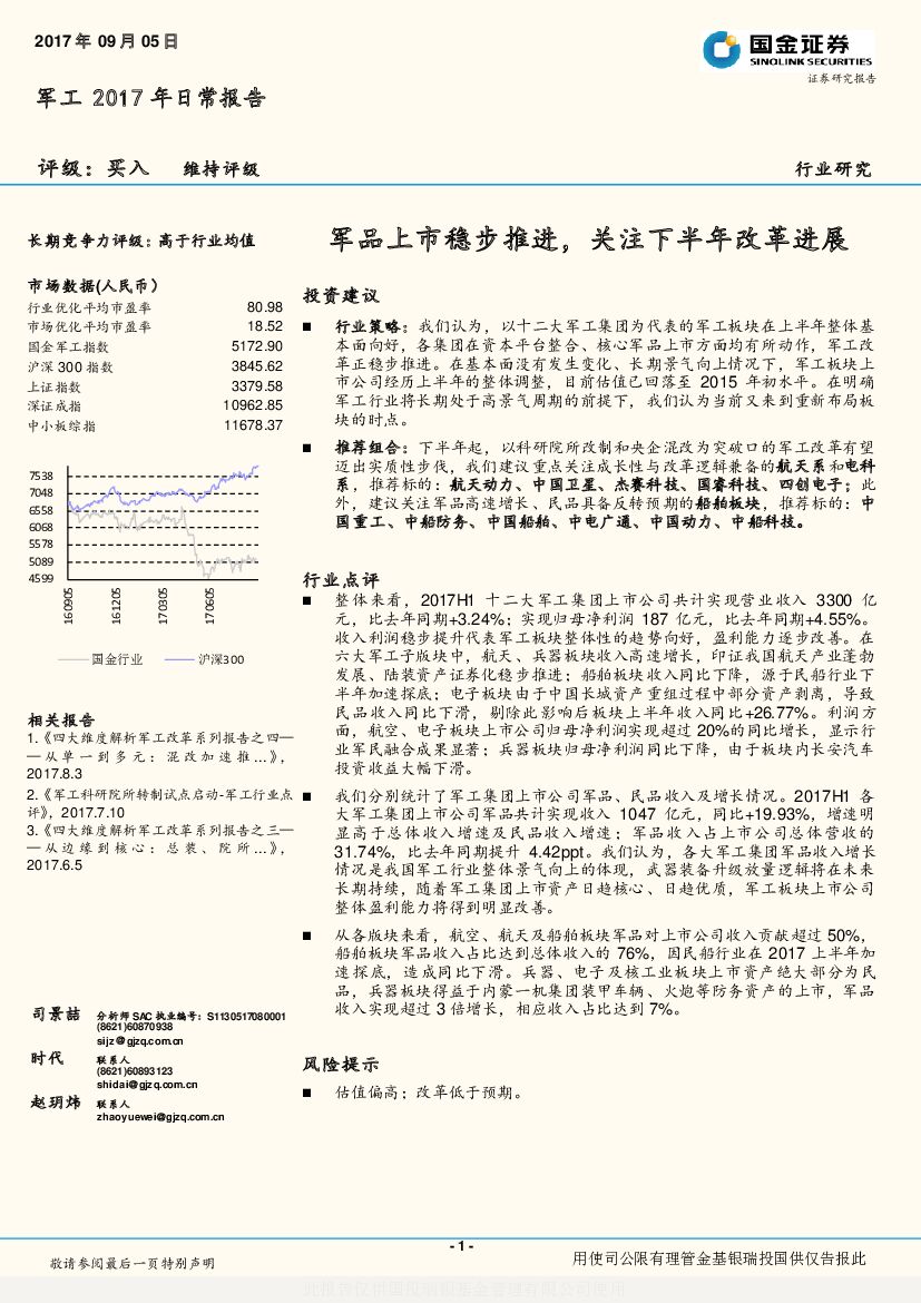 国金证券:军工2017年日常报告:军品上市稳步推进,关注下半年改革进展.pdf