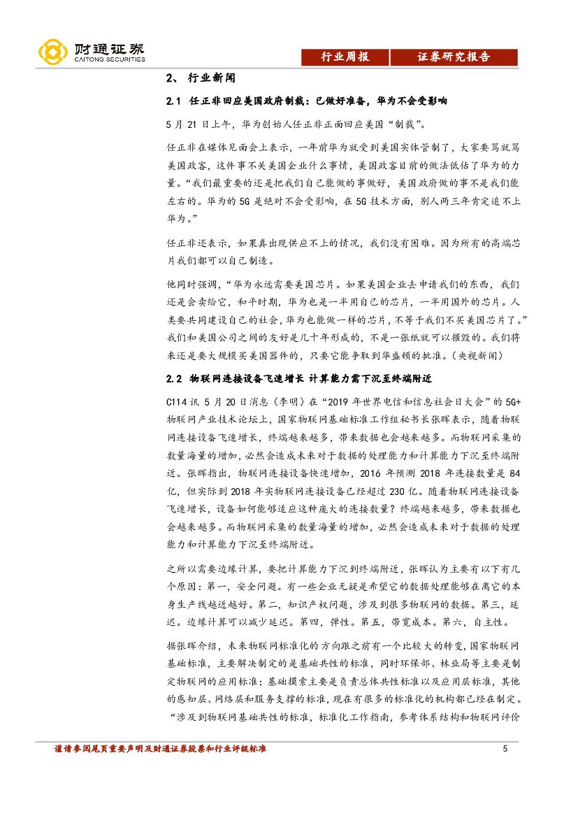 财通证券:通信行业周报:5G投资高峰在明年,华为事件倒逼国产替代加速发展.pdf