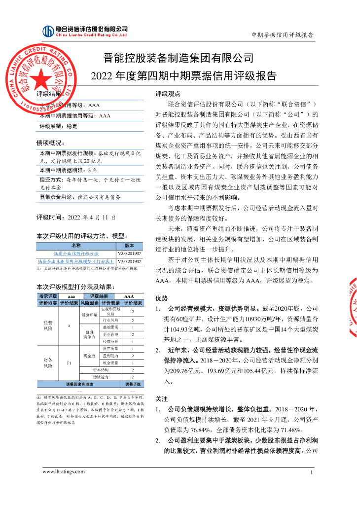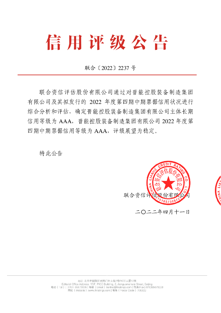 联合资信:晋能控股装备制造集团有限公司2022年度第四期中期票据信用评级报告.pdf