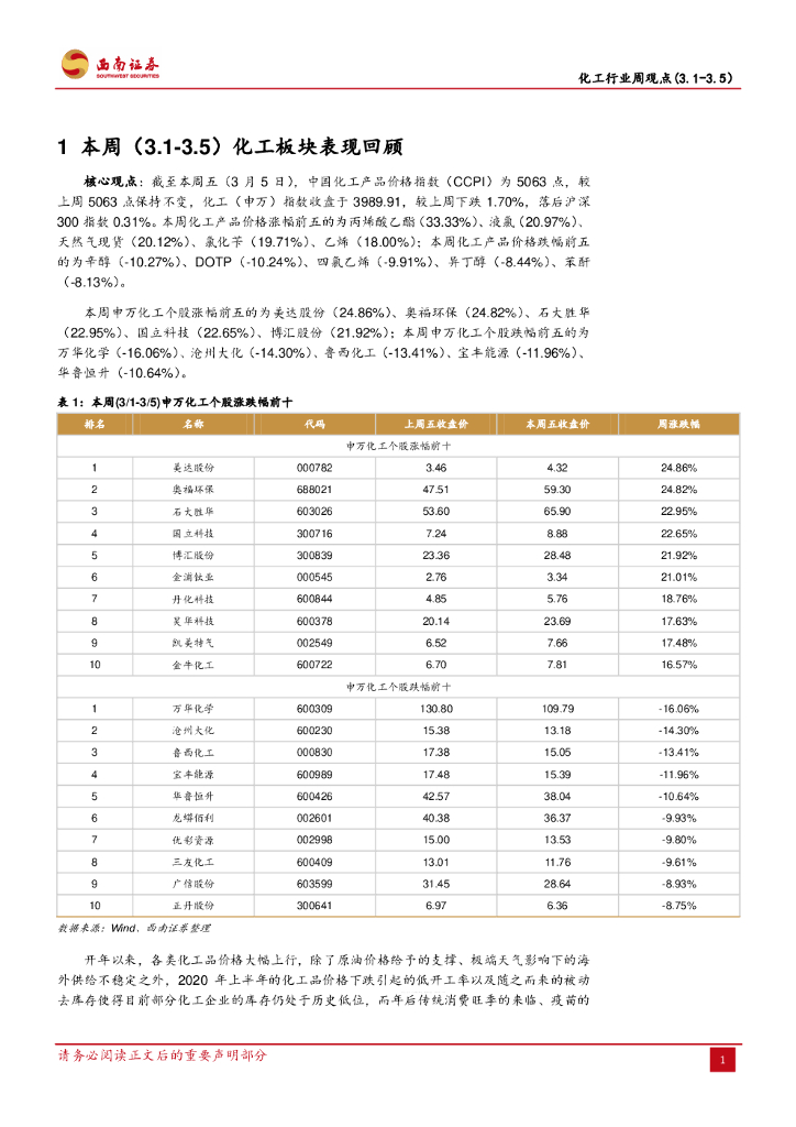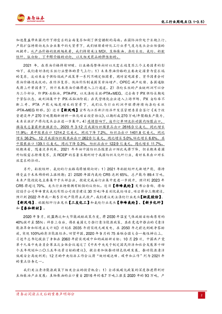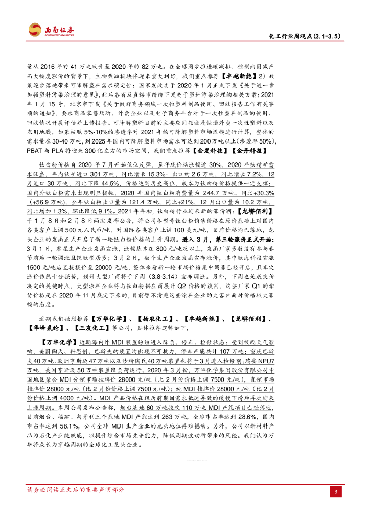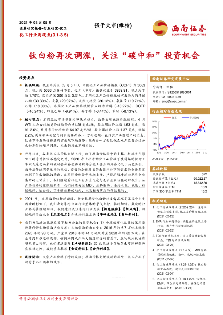 西南证券:化工行业周观点:钛白粉再次调涨,关注“碳中和”投资机会.pdf
