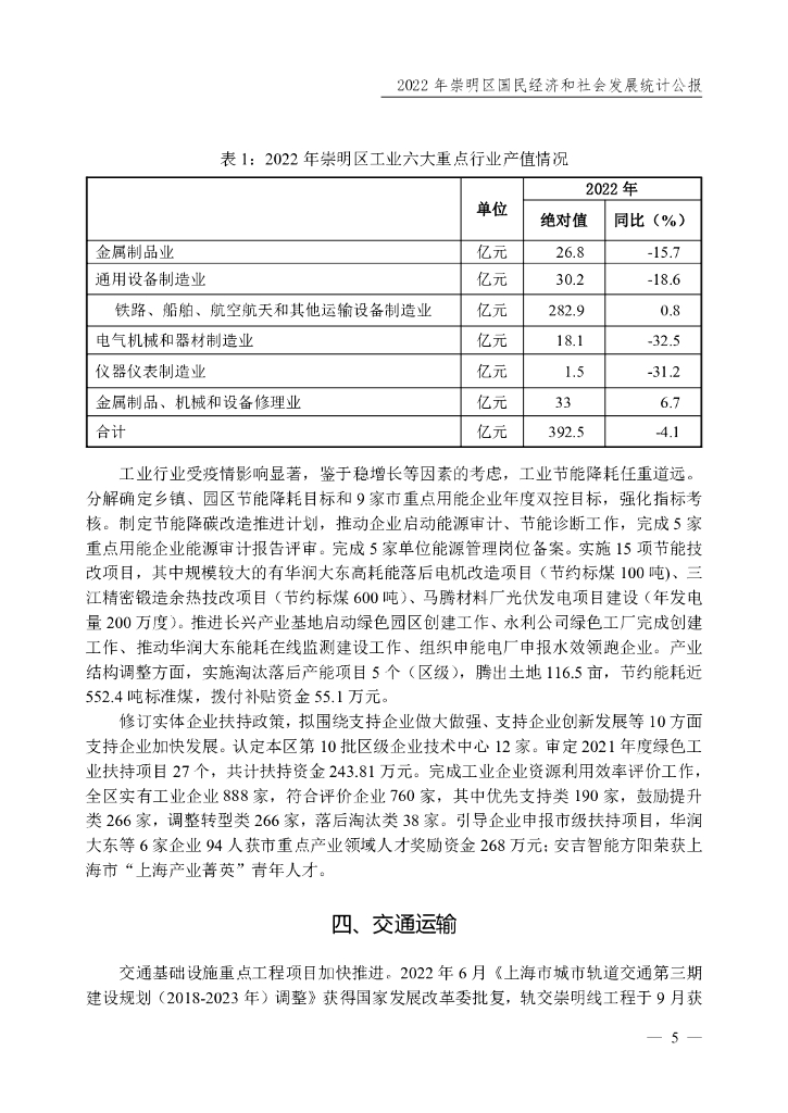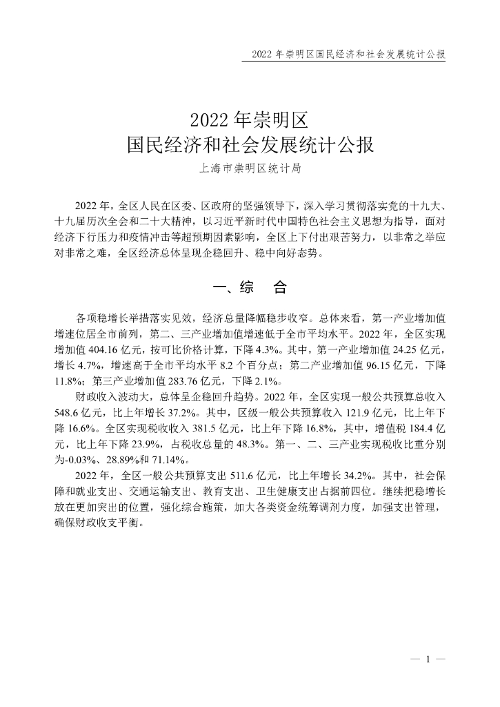 2022年崇明区国民经济和社会发展统计公报.pdf