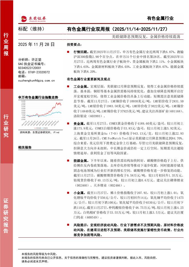 东莞证券:有色金属行业双周报:美联储降息预期反复,金属价格持续震荡.pdf