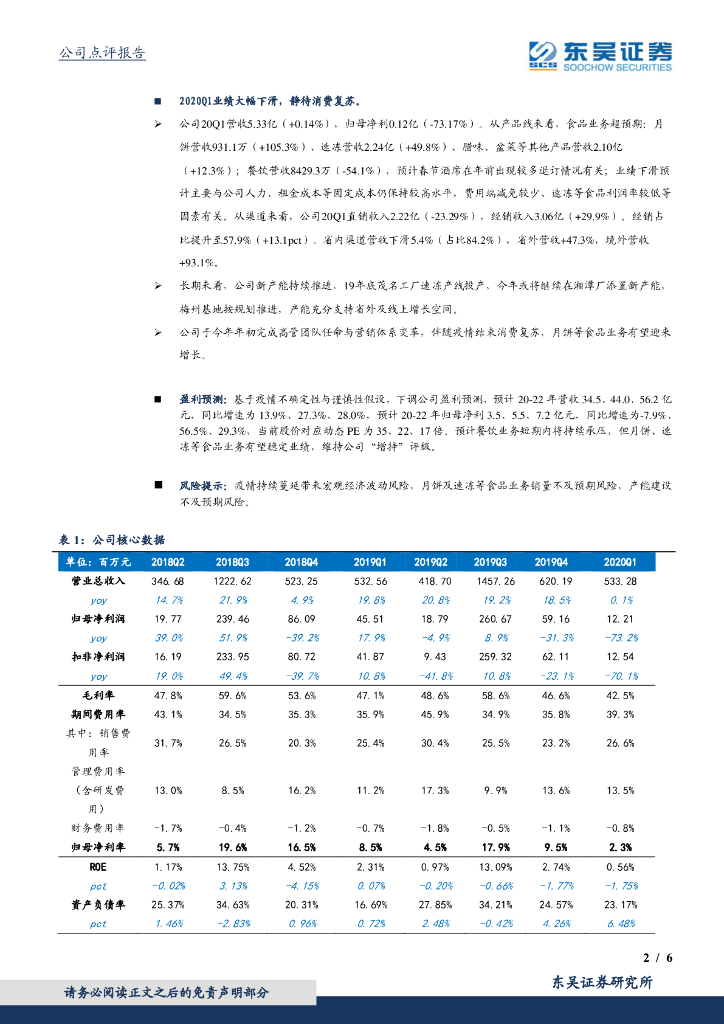 东吴证券:广州酒家(603043)-19年稳健经营,20Q1承压显著,静待消费复苏.pdf