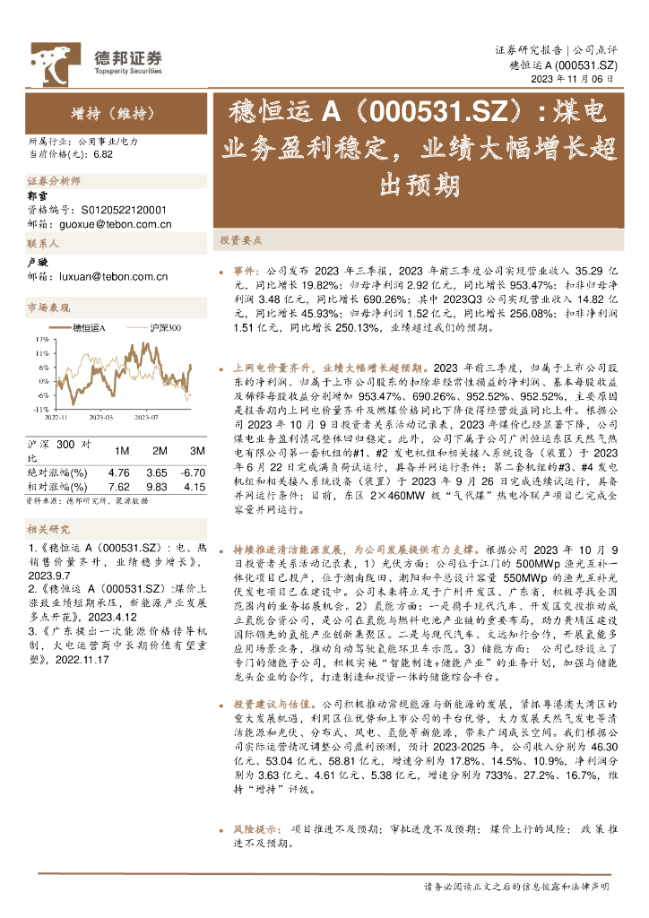 德邦证券:穗恒运A(000531)-煤电业务盈利稳定,业绩大幅增长超出预期.pdf