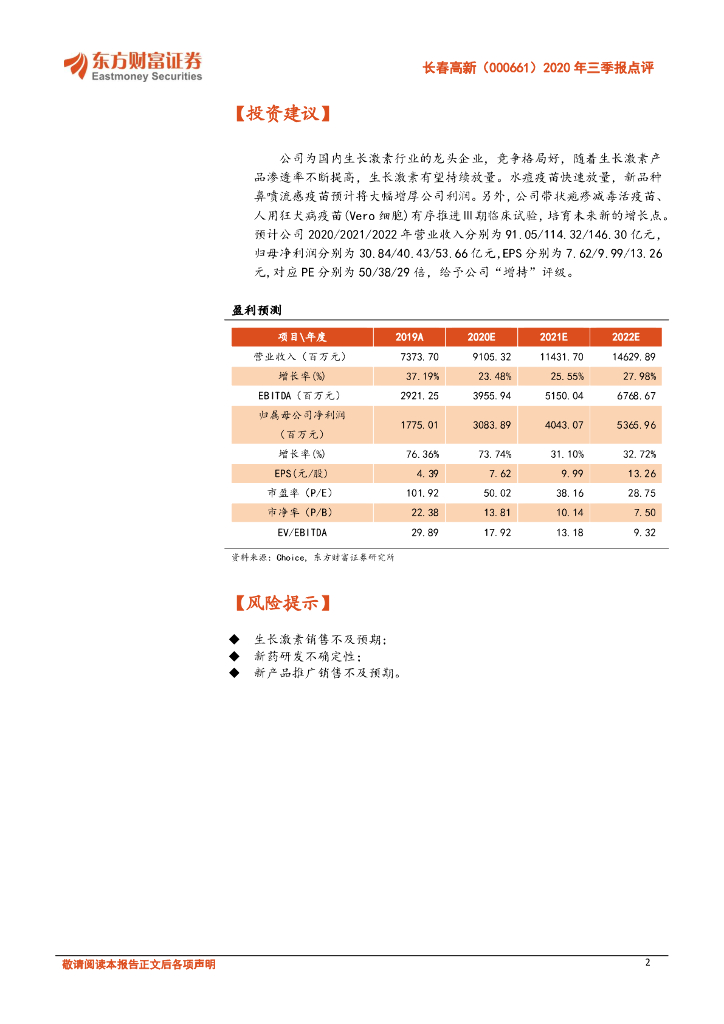 东方财富证券:长春高新(000661)-2020年三季报点评:高增长如期兑现,疫苗产品加速放量.pdf