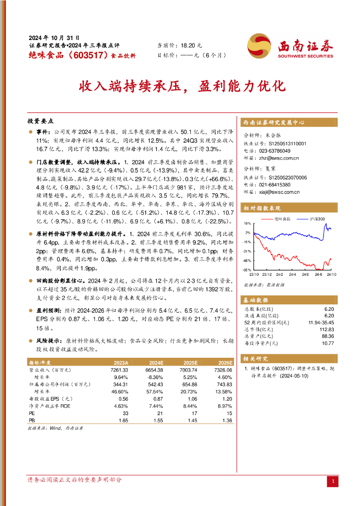 西南证券:绝味食品(603517)-收入端持续承压,盈利能力优化.pdf