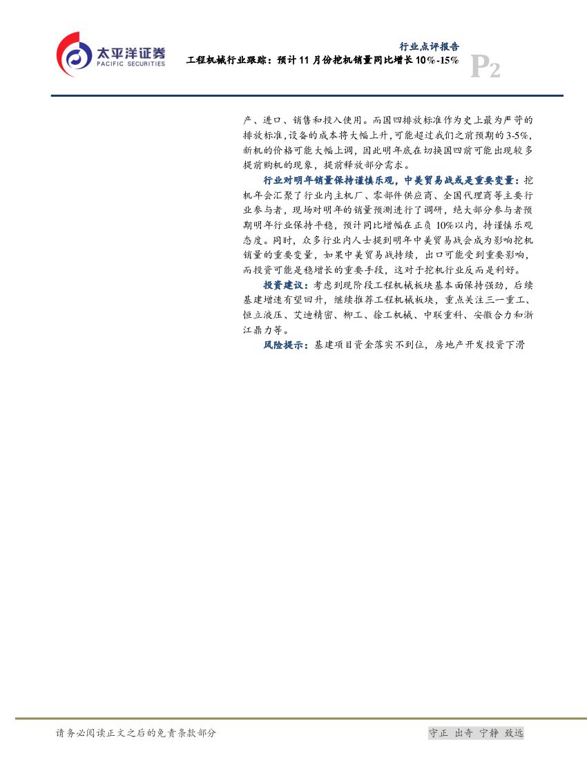 太平洋证券:工程机械行业跟踪:预计11月份挖机销量同比增长10%-15%.pdf