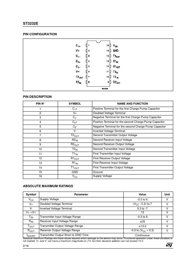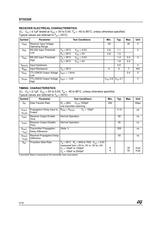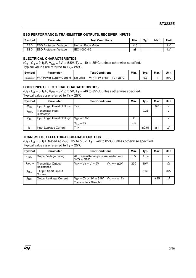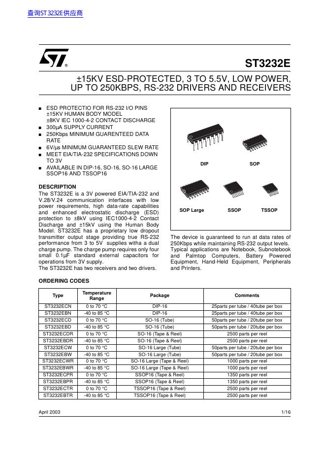ST ST3232E ±15KV ESD-PROTECTED, 3 TO 5.5V, LOW POWER, UP TO 250KBPS, RS-232 DRIVERS AND RECEIVERS 数据手册.pdf