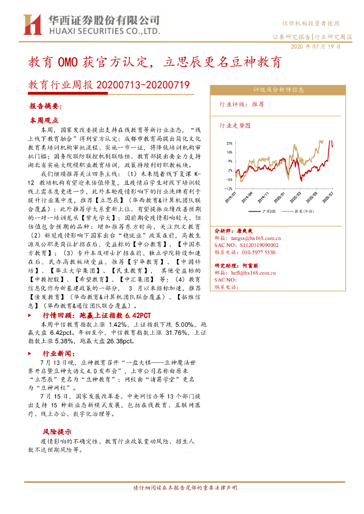 华西证券:教育行业周报:教育OMO获官方认定,立思辰更名豆神教育.pdf