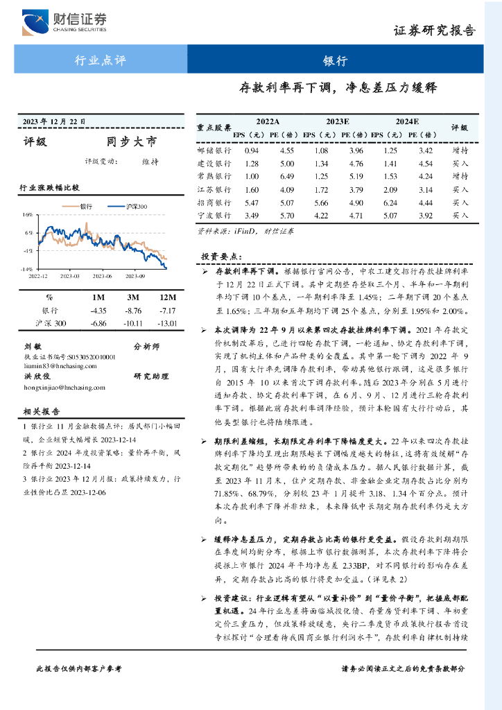 财信证券:银行行业点评:存款利率再下调,净息差压力缓释.pdf