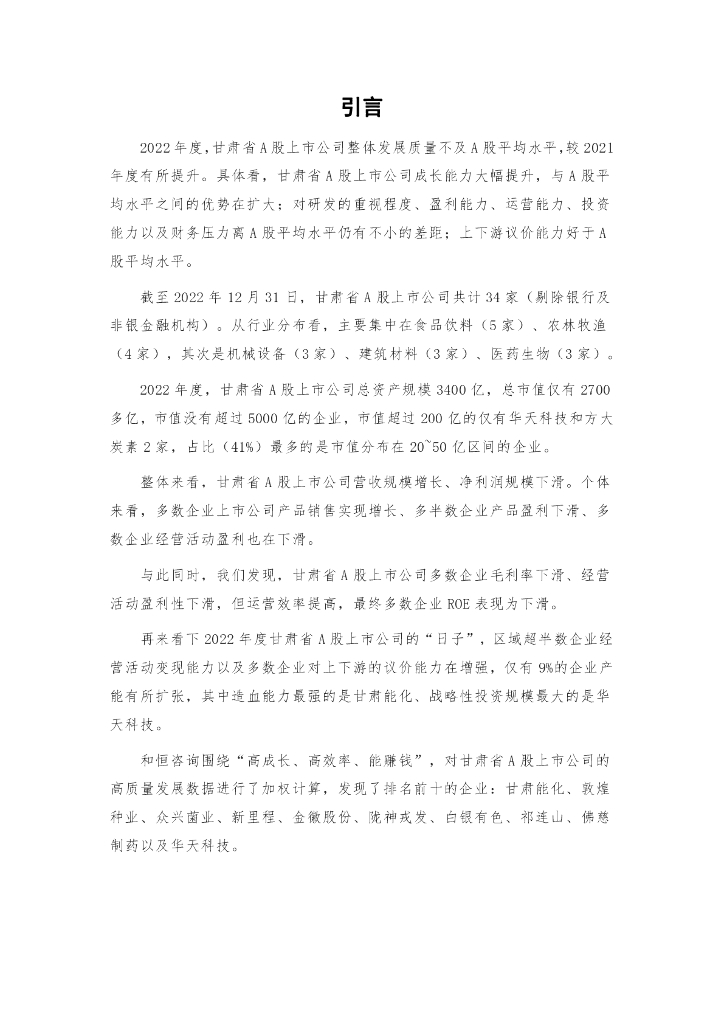 和恒咨询:甘肃省A股上市公司高质量发展报告(2022年报).pdf