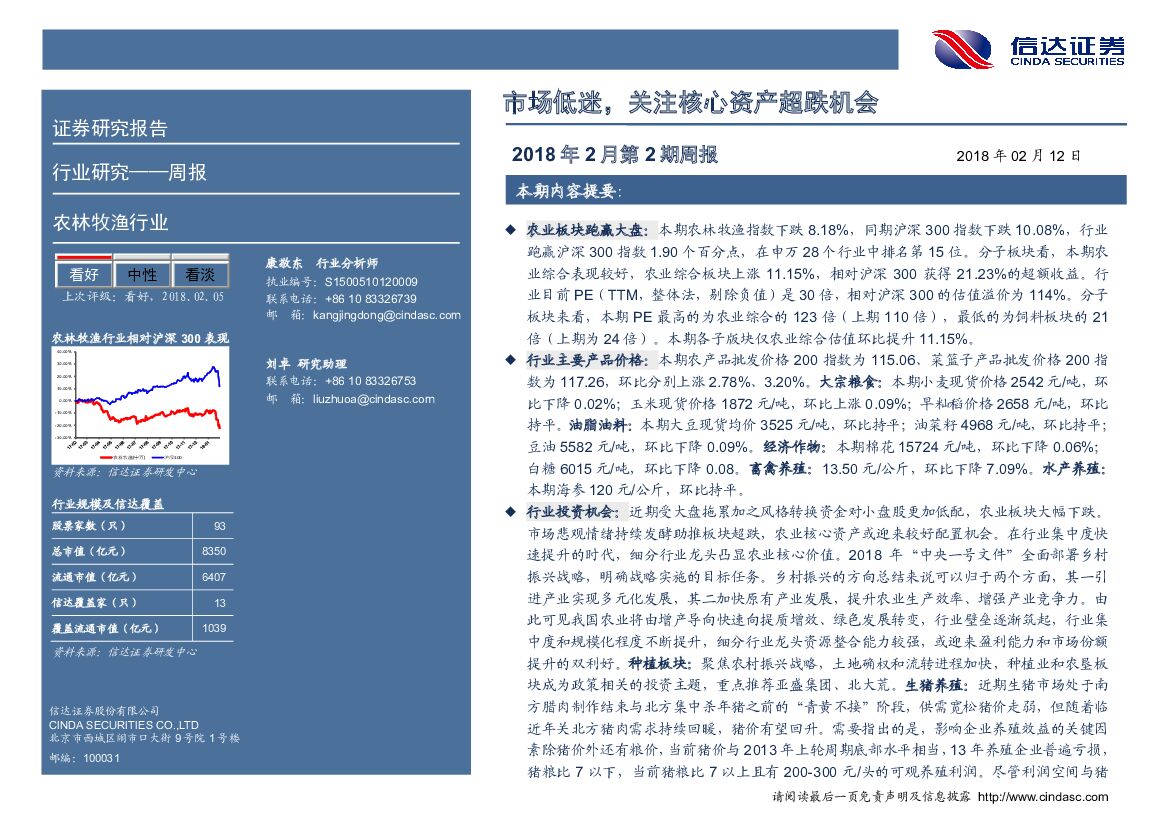 信达证券:农林牧渔2018年2月第2期周报:市场低迷,关注核心资产超跌机会.pdf