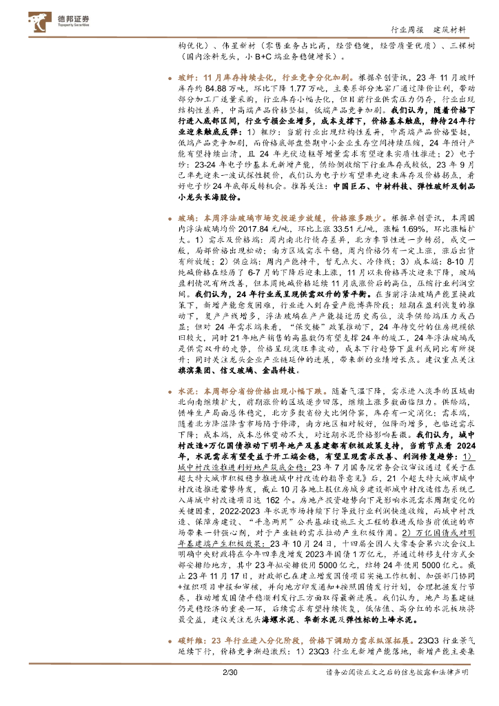 德邦证券:建筑材料周观点:11月地产新开工同比增速转正,北上地产政策优化提振信心.pdf