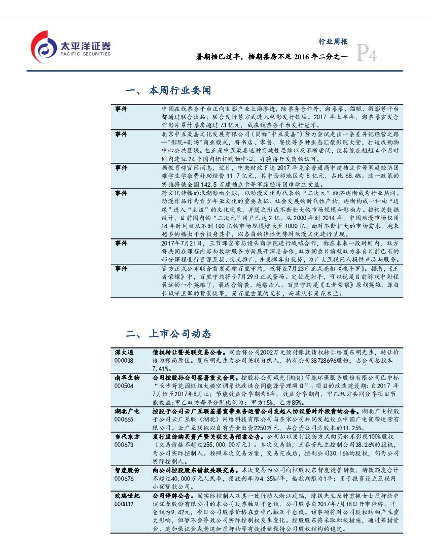 太平洋证券:文化传媒行业周报:暑期档已过半,档期票房不足2016年二分之一.pdf