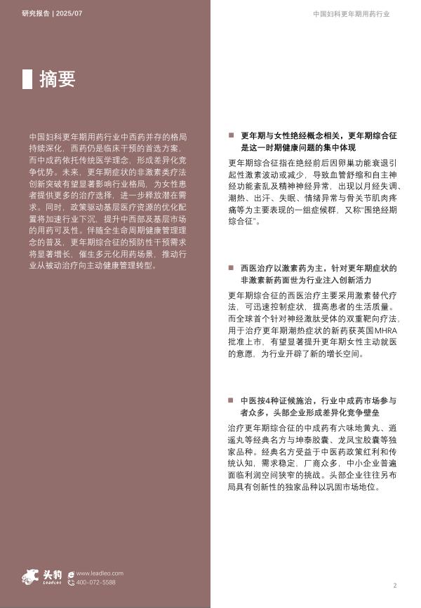 头豹研究院:2025年中国妇科更年期用药行业概览:从“被遗忘的岁月”到“被照亮的未来”,更年期用药帮助女性跨越寒冬.pdf