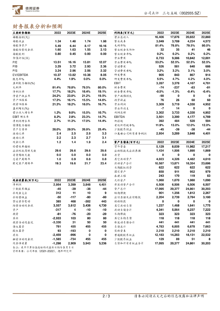 德邦证券:三七互娱(002555)-23Q2财报点评:收入费用错配导致短期承压,看好丰富产品储备下的利润释放.pdf