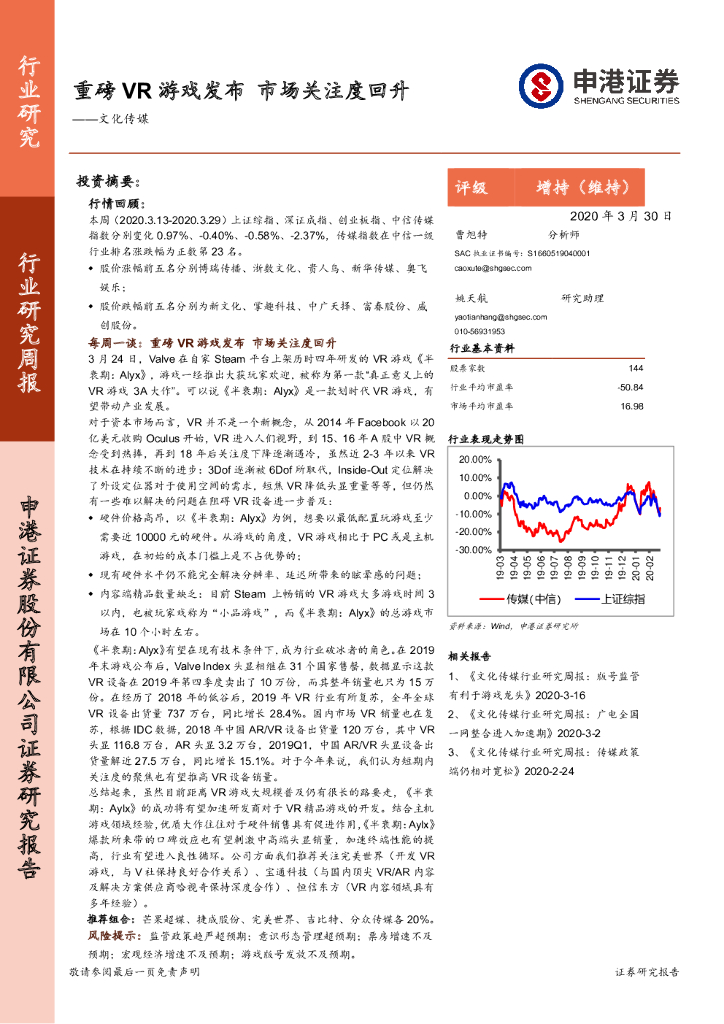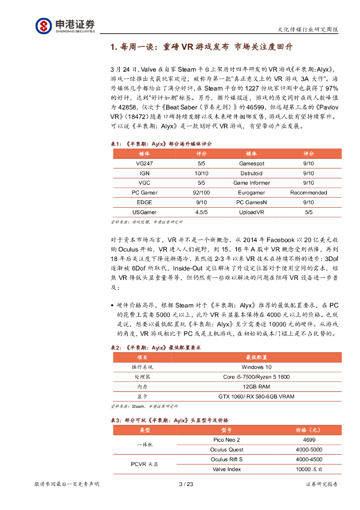 申港证券:文化传媒行业研究周报:重磅VR游戏发布 市场关注度回升.pdf