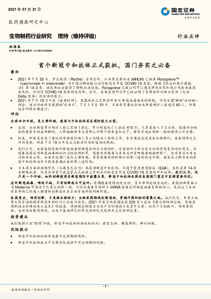 国金证券:生物制药行业研究:首个新冠中和抗体正式获批,国门夯实之必备.pdf