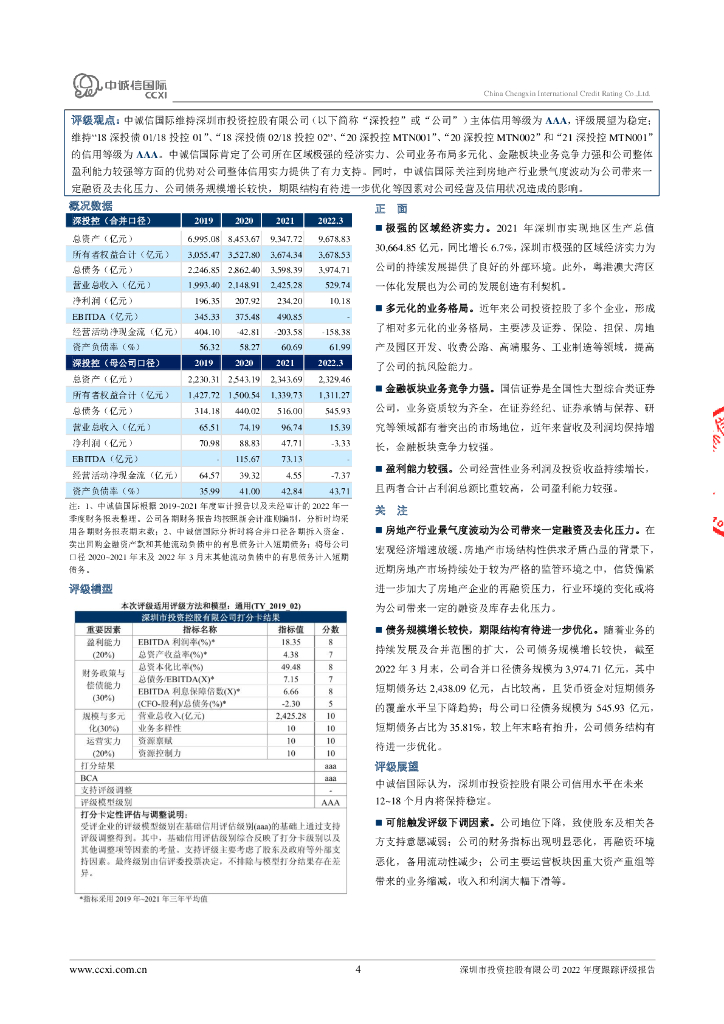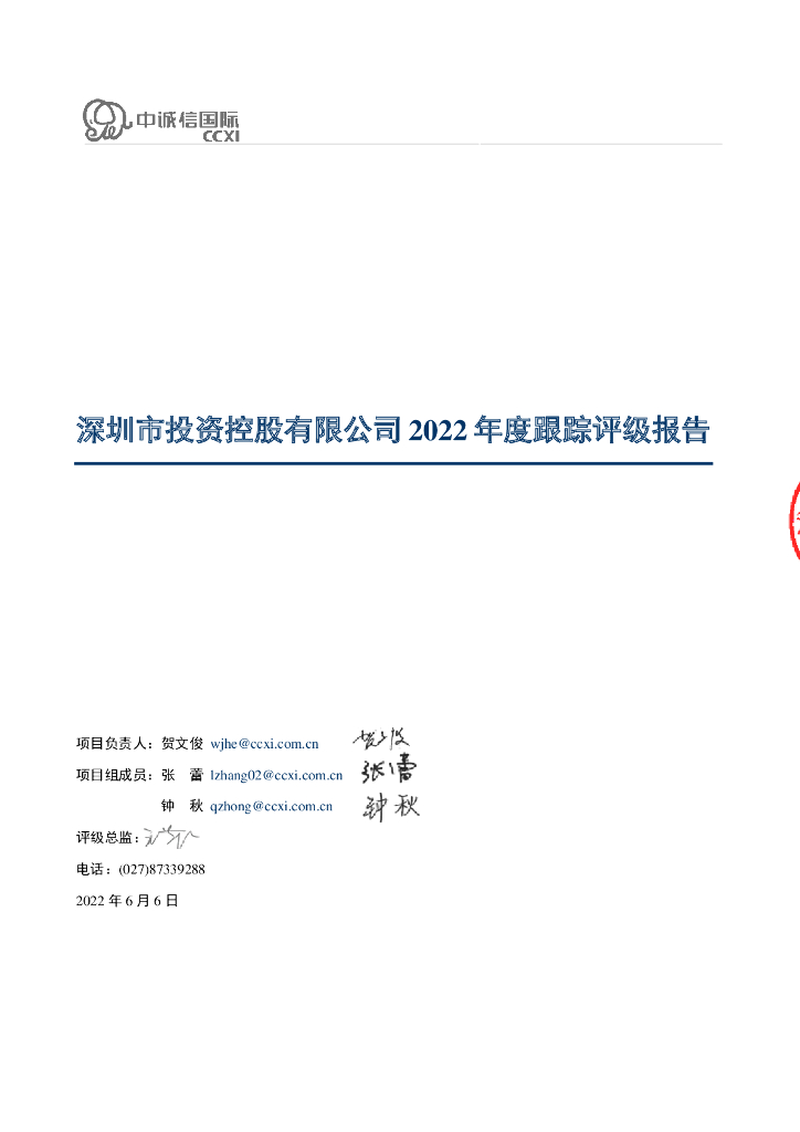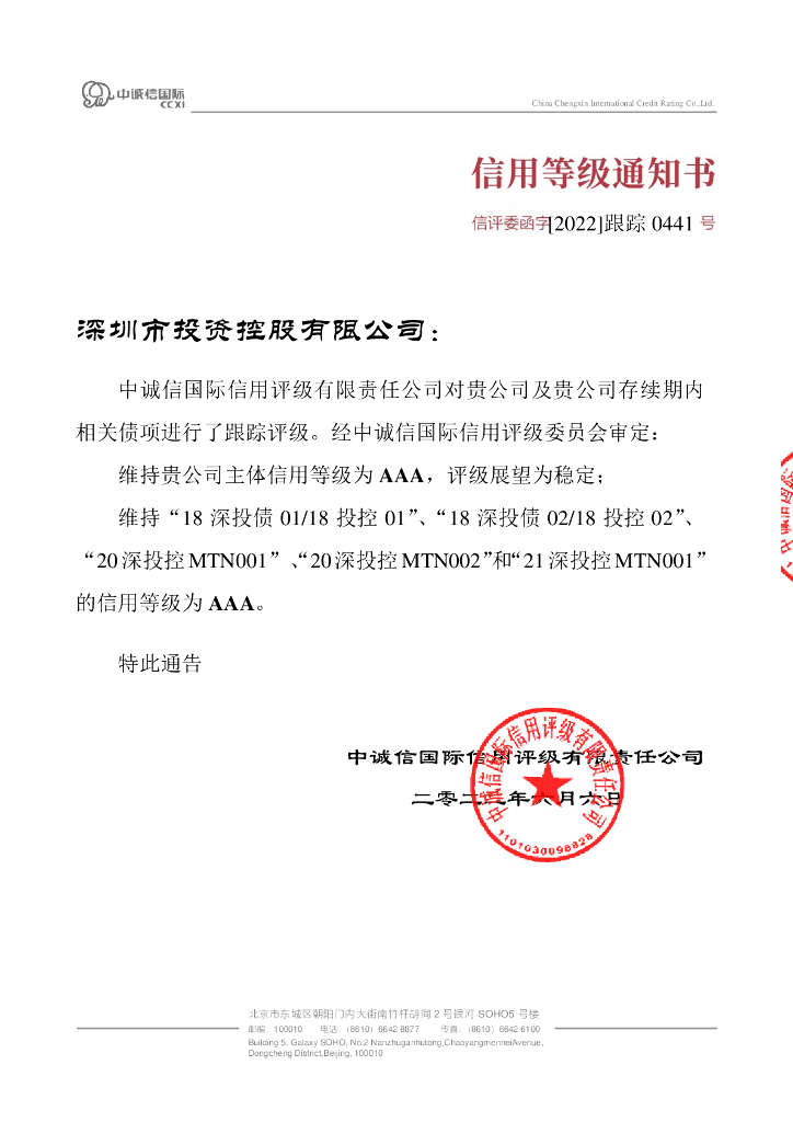 中诚信:深圳市投资控股有限公司2022年度跟踪评级报告.pdf