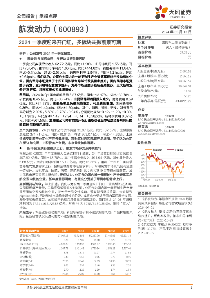 天风证券:航发动力(600893)-2024一季度迎来开门红,多板块共振前景可期.pdf