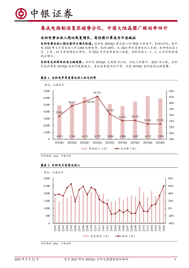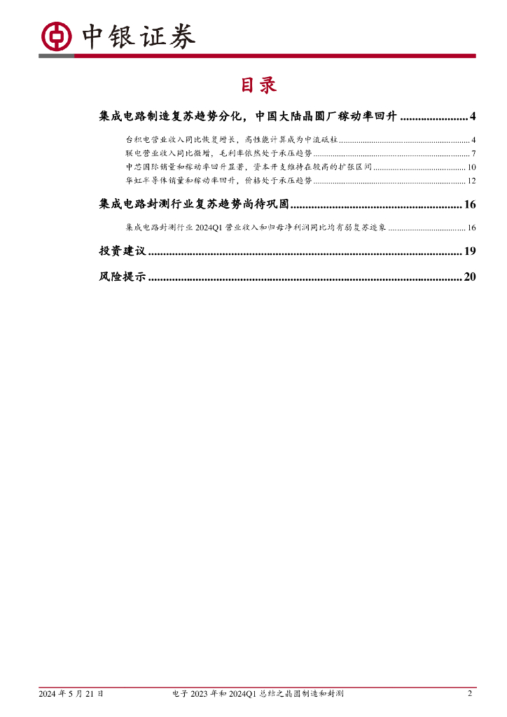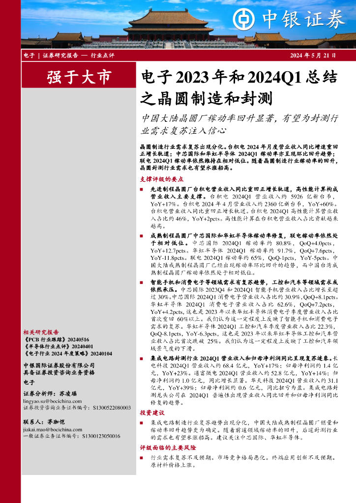 中银证券:电子2023年和2024Q1总结之晶圆制造和封测:中国大陆晶圆厂稼动率回升显著,有望为封测行业需求复苏注入信心.pdf