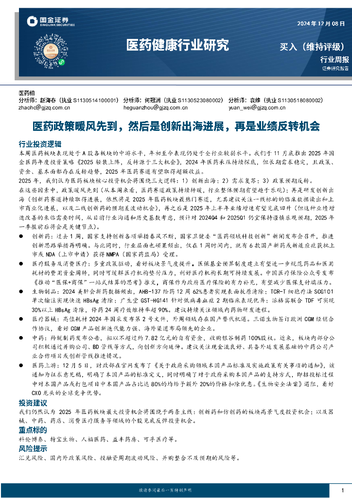 国金证券:医药健康行业研究:医药政策暖风先到,然后是创新出海进展,再是业绩反转机会.pdf