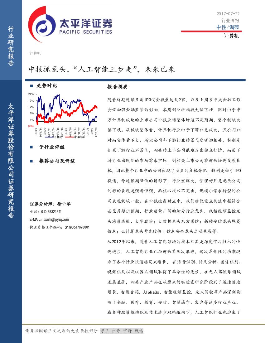 太平洋证券:计算机行业周报:中报抓龙头,“人工智能三步走”,未来已来.pdf