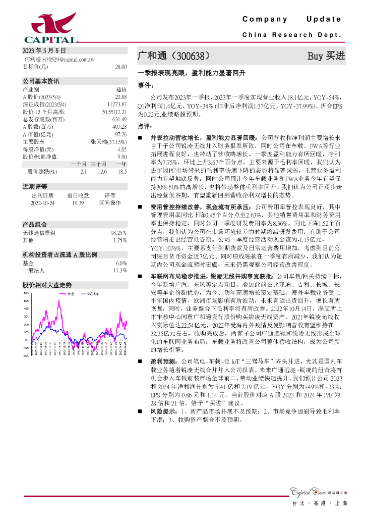 群益证券:广和通(300638)-一季报表现亮眼,盈利能力显著回升.pdf