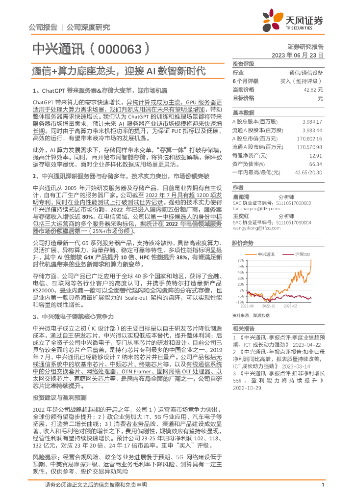 天风证券:中兴通讯(000063)-通信+算力底座龙头,迎接AI数智新时代.pdf