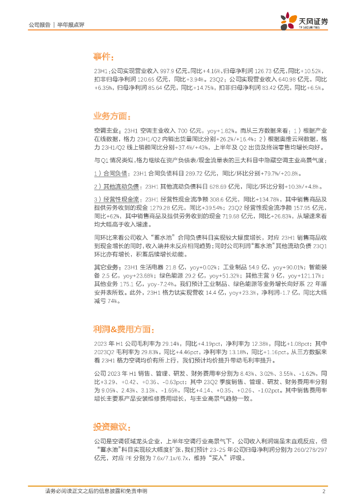 天风证券:格力电器(000651)-利润增长向好,蓄水池大幅度提升.pdf