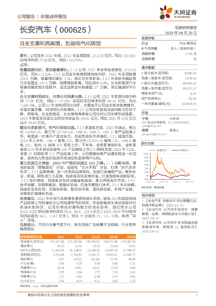 天风证券:长安汽车(000625)-自主支撑利润高增,加速电气化转型.pdf