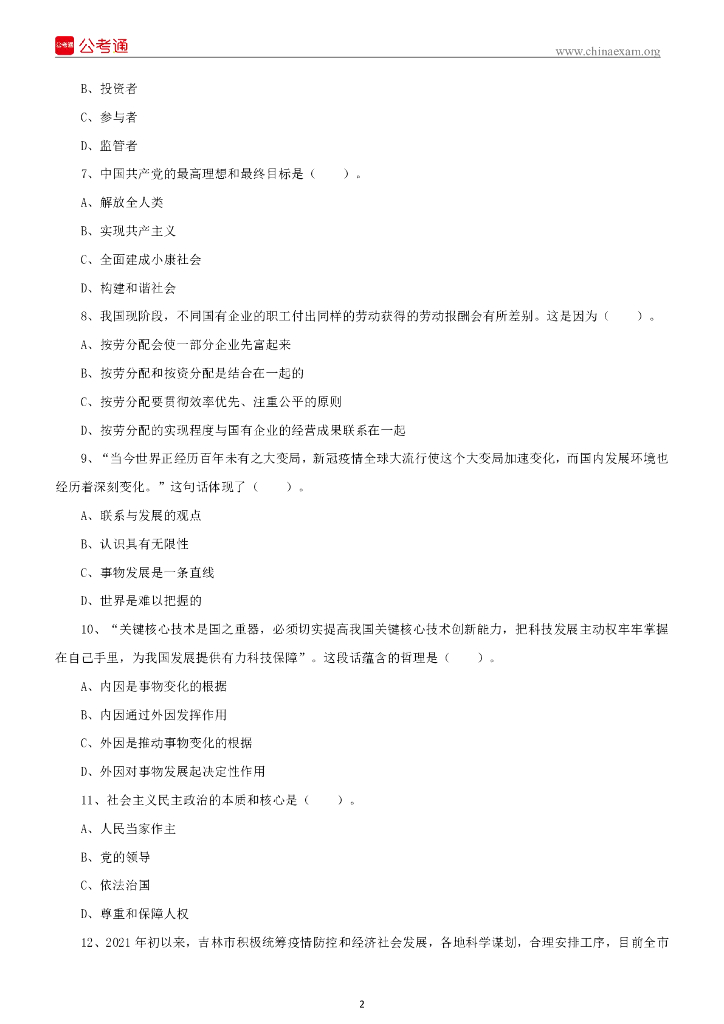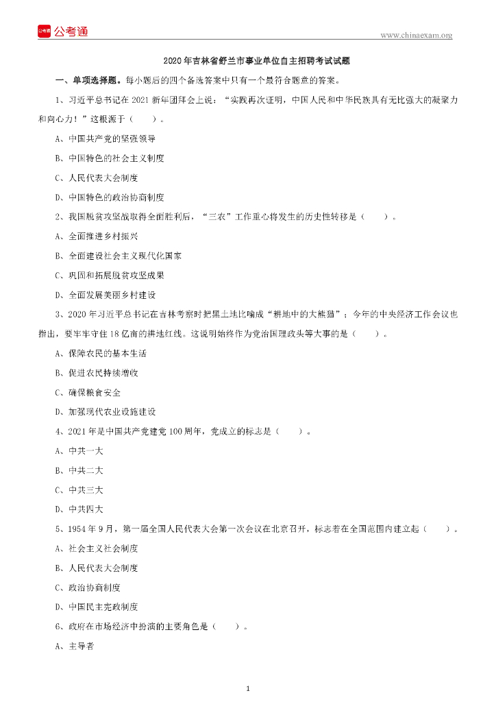 2020年吉林省舒兰市事业单位自主招聘考试试题.pdf