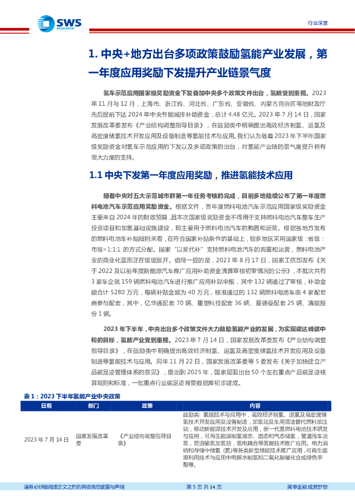 申万宏源:2023年下半年氢能产业跟踪报告:国家补贴下发+上游环节投资加大,2024年氢能景气度提升.pdf