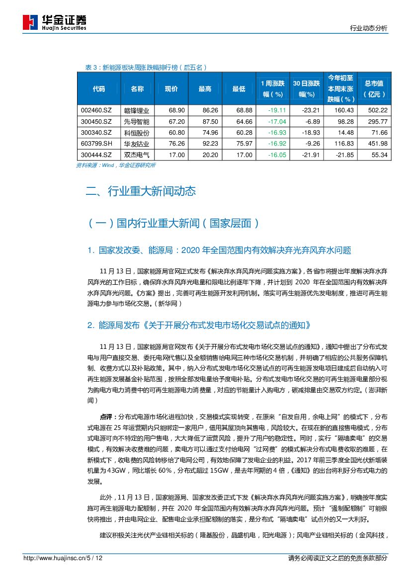 华金证券:新能源设备第46周周报:政策利好新能源发电板块,可再生能源有望实现产业化.pdf