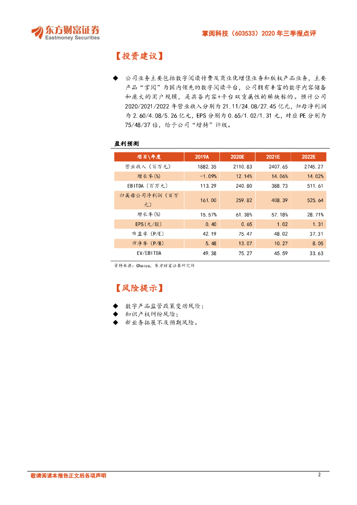 东方财富证券:掌阅科技(603533)-2020年三季报点评:字节跳动入股,数字阅读龙头迈上发展新台阶.pdf
