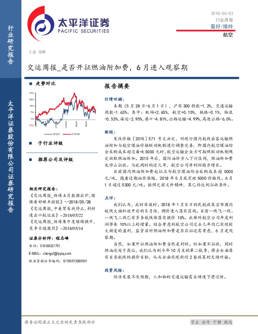 太平洋证券:交运周报:是否开征燃油附加费,6月进入观察期.pdf
