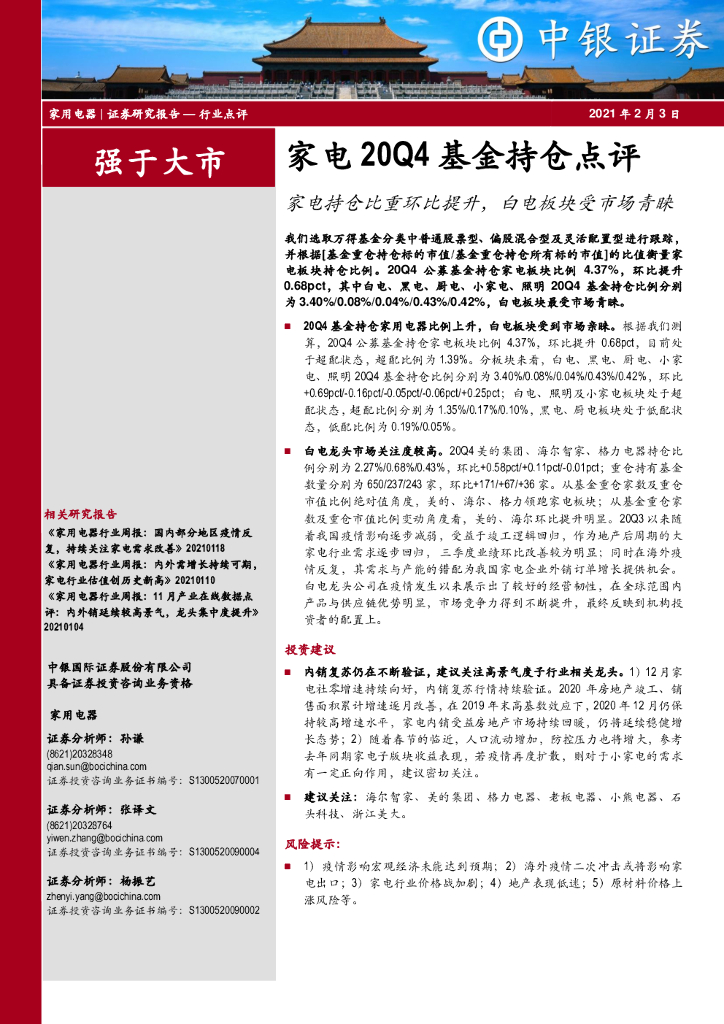 中银证券:家电20Q4基金持仓点评:家电持仓比重环比提升,白电板块受市场青睐.pdf