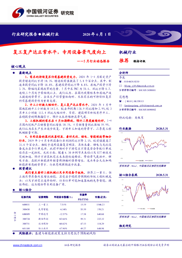 中国银河:机械5月行业动态报告:复工复产达正常水平,专用设备景气度向上.pdf