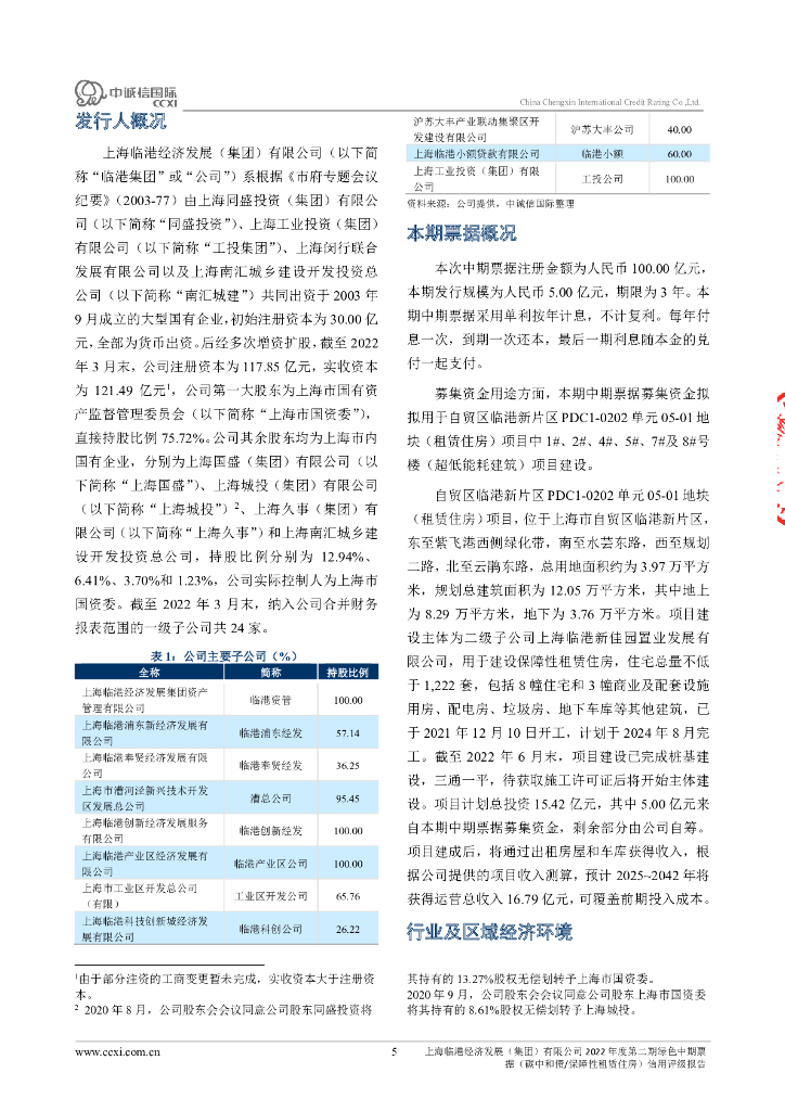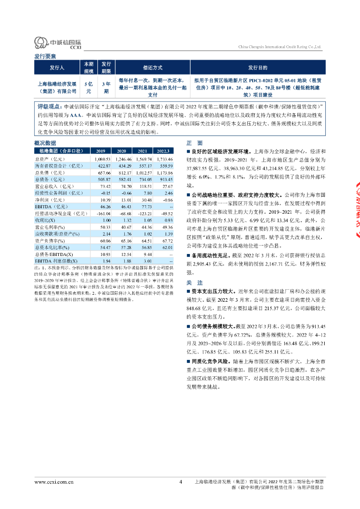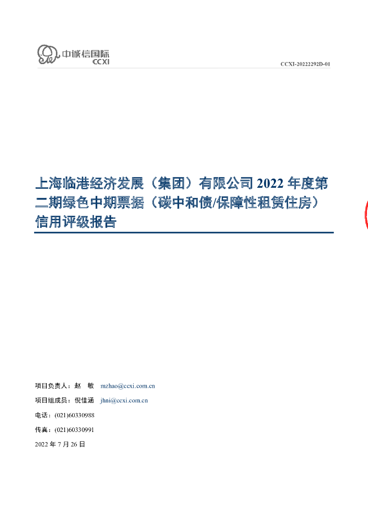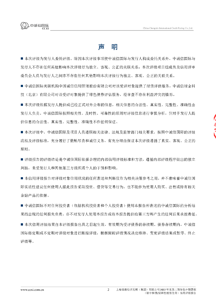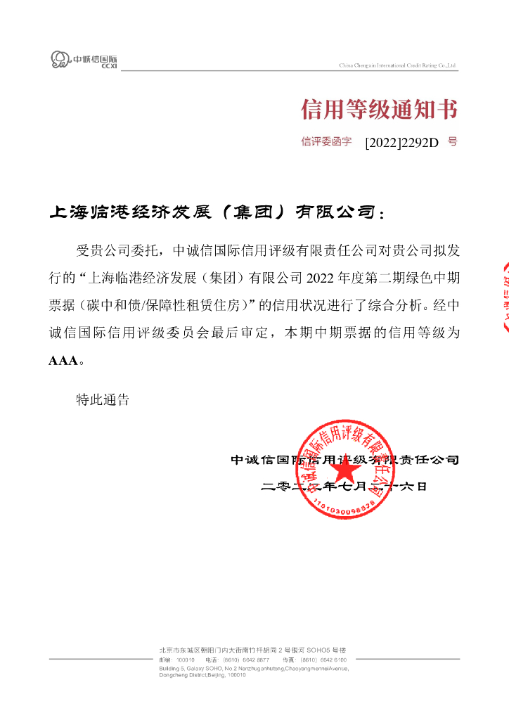 中诚信:上海临港经济发展(集团)有限公司2022年度第二期绿色中期票据(碳中和债、保障性租赁住房)信用评级报告.pdf